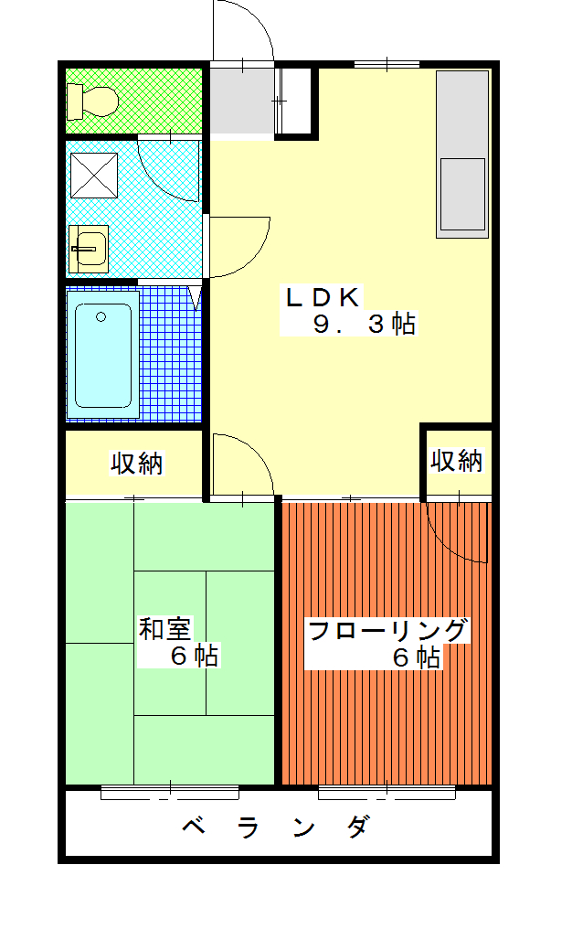 | 間取詳細 | 9.3DK 和室6.0帖 洋室6.0帖 トイレ(ウォシュレット) バス 室内洗濯機置場、 |